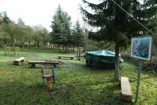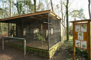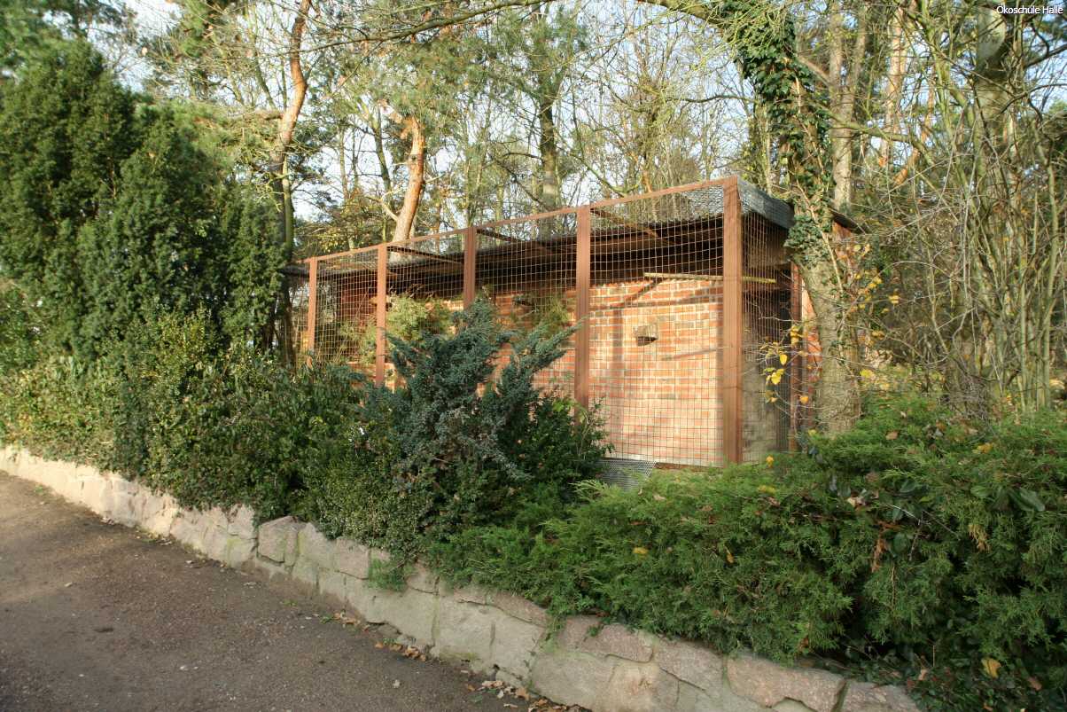 Voliere zur Aufzucht verletzter Greifvögel (z.Z. Eulen, sonst oft Turmfalken)